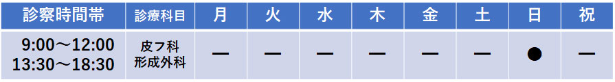 ニキビ、できもの、イボ、水虫、多汗症、湿疹、ホクロ、かゆみ、アトピー、しわ、たるみ、フット ケア、ヘルペスなどの皮膚トラブルに対応しております